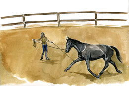 Кормилец встал в центре плаца и легонько пошевелил бичом. Тунгус вздохнул, уныло отошёл от него на длину корды и побежал направо. Лицо у него было злое и недовольное. Марик знал, что он терпеть не может бегать на корде.