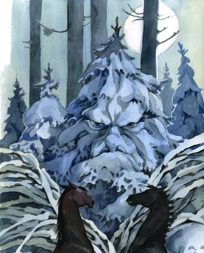 – Что, малышня? Заблудились? Вижу, вижу… А зачем в лес сунулись в неположенный час? Носитесь, как ошалелые, зверьё распугали, перебудили, ветки ломаете! А если медведь из спячки проснётся? Что ему? Голодать тут на морозе из-за глупости двух лошадиных детёнышей? Об этом вы подумали? Или покормить его хотели?