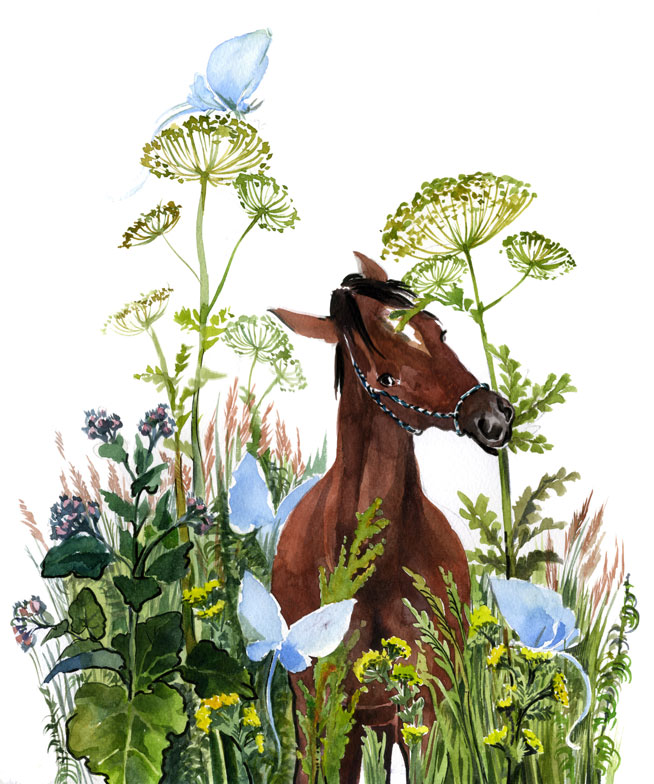 Марику понадобилась вся сила воли, чтобы шагать рядом и не броситься с гиканьем в колышущееся у дороги зелёное море. Пахнущий травами, пряными цветами, мёдом, летом воздух гудел от жужжания пчёл. Редкие рябинки приветствовали жеребёнка лёгкими взмахами ажурных листьев и изящных веточек.
