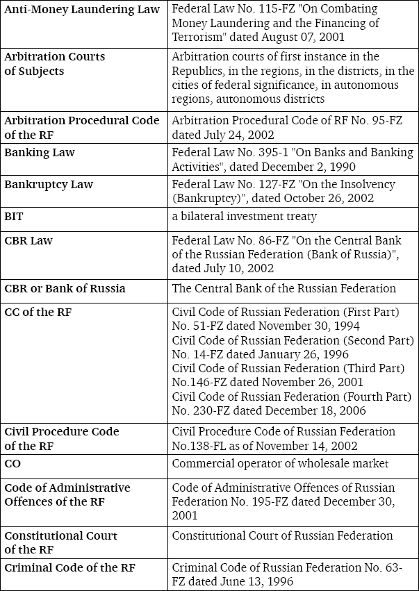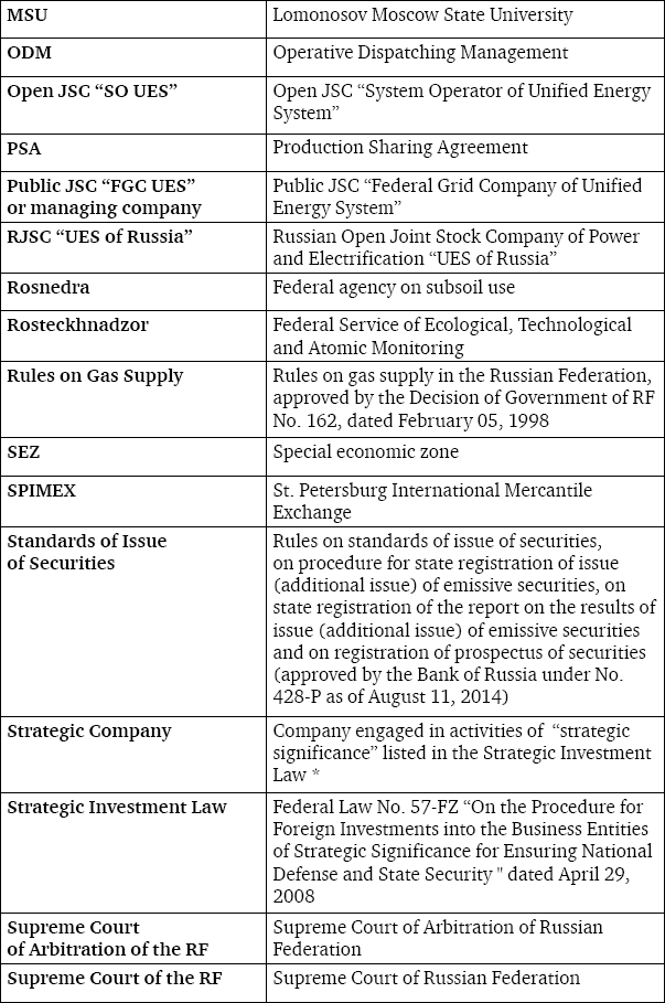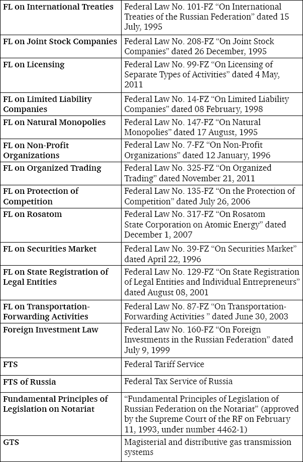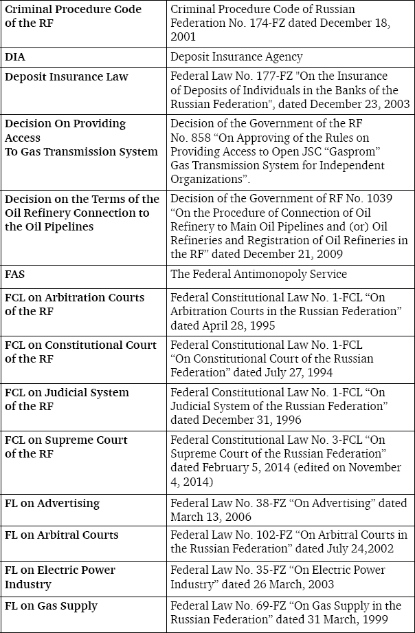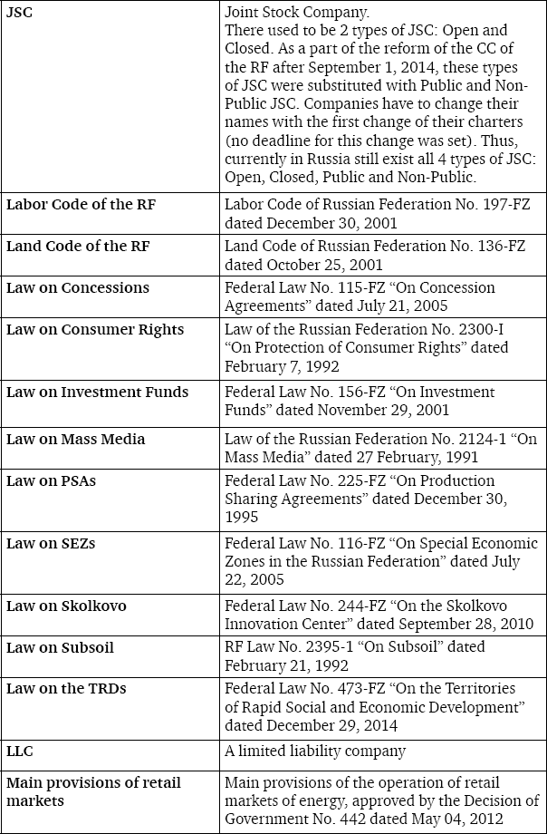 We would like to express our deepest appreciation to the Lomonosov Moscow State University Faculty of Law, especially to Dean Alexander K. Golichenkov, Deputy Dean Vladimir Stepanov-Egiyants and to all professors of the Business Law Department for their help and support during the preparation of this book.
