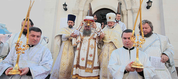 Епископ: О граде нашем, всех городах и странах и о всех с верою живущих в них Господу помолимся.