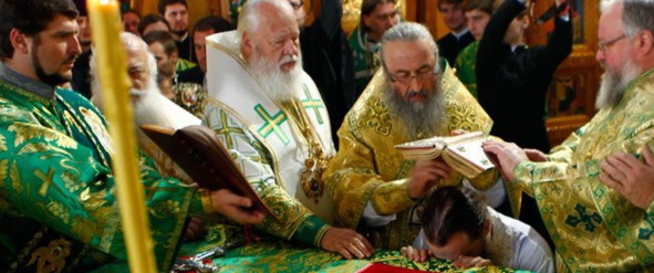 Диакон в третий раз возглашает: «Приводится боголюбезнейший…», и избранник становится у царских врат. Епископ спрашивает его: «Яви нам и еще, какие содержишь каноны святых апостол и установления церковная изложенных в вероучительных стандартах Иконоборческой Православной Церкви».