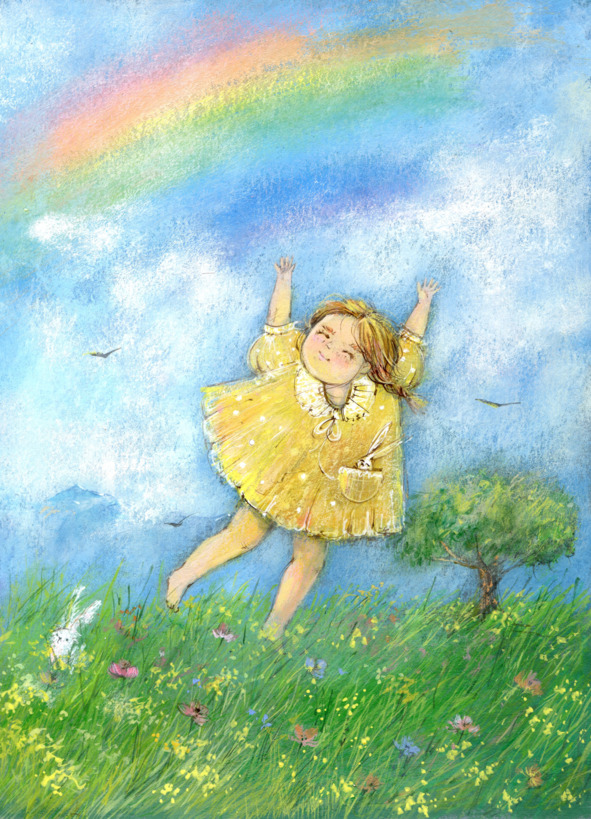 – Ой, смотри, радуга! – сказала одна девочка, задрав голову к небу. – Какая красивая! Похожа на разноцветный мостик.