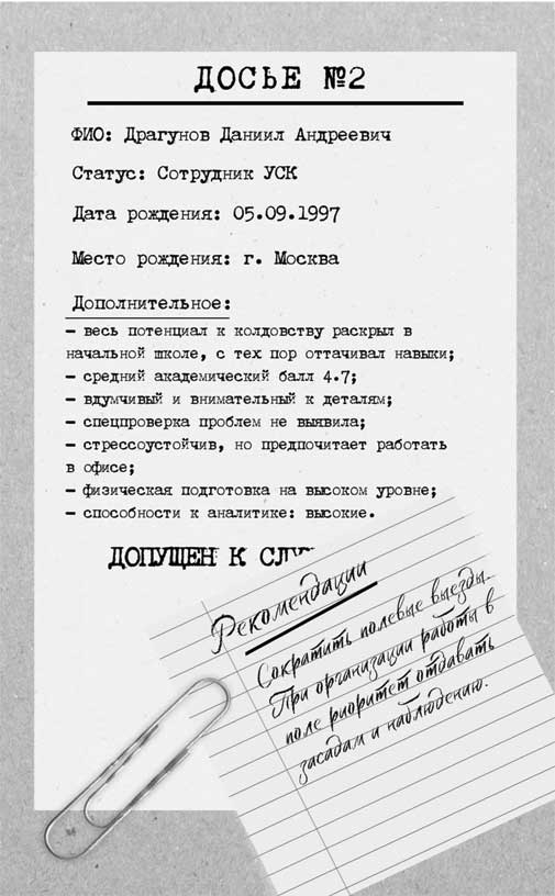 – Чертовы «усики», – раздосадованно прорычал Марк, припомнив уничижительное прозвище сотрудников УСК, бытовавшее в народе. А еще один из них наблюдал за ним через зеркальное стекло. Колдун чувствовал, что там кто-то есть, и старался туда не смотреть. Но в груди Марка звенело странное ощущение, будто его и того, кто сидел за стеклом, связывала некая незримая и очень тонкая нить. Но чем дальше он уходил от здания управления, тем слабее становилось чувство, пока не исчезло совсем.