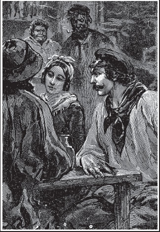 Когда разбойник и Певунья вошли в кабачок, к неизвестному, шедшему последним, приблизился угольщик и сказал ему по-английски тихо, почтительно, но с явной укоризной: