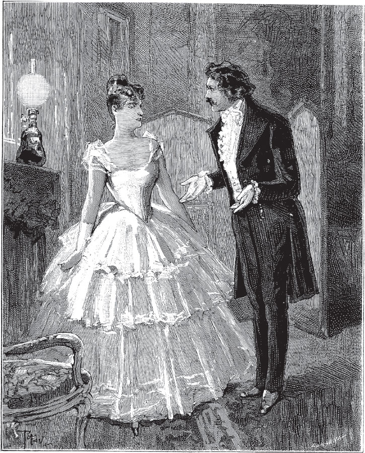 Надменный и решительный нрав герцогини де Люсене нам уже известен: пусть же читатель представит теперь ее негодующее лицо и разгневанный взор, которым она встретила виконта; он между тем, приблизившись к ней, как всегда элегантный и улыбающийся, сказал с доверительной, исполненной любви улыбкой: