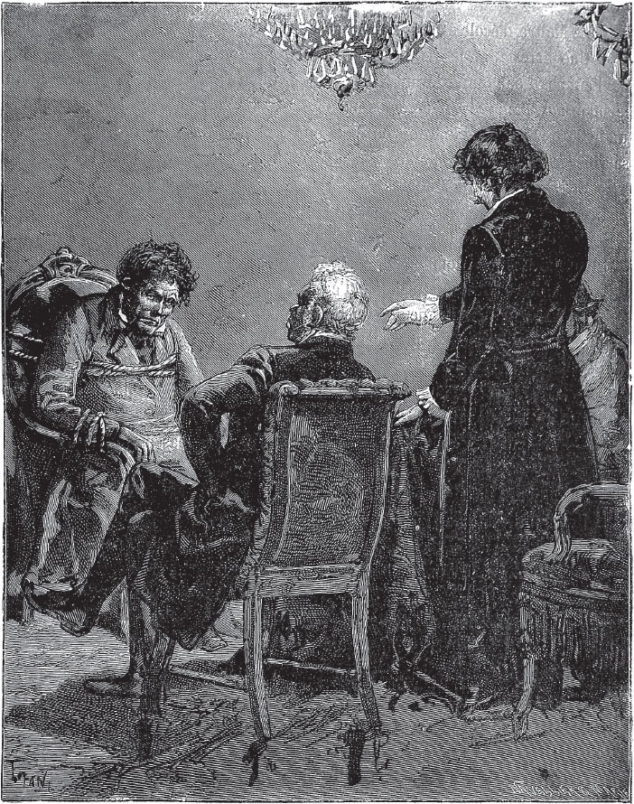 – Вот что, милый, – сказал Родольф ошеломленному Поножовщику, – мне надо поговорить с господином Давидом, а тебя я попрошу сходить в соседнюю комнату… там, на письменном столе, лежит красный бумажник, возьми из него пять тысяч франков и принеси их мне.