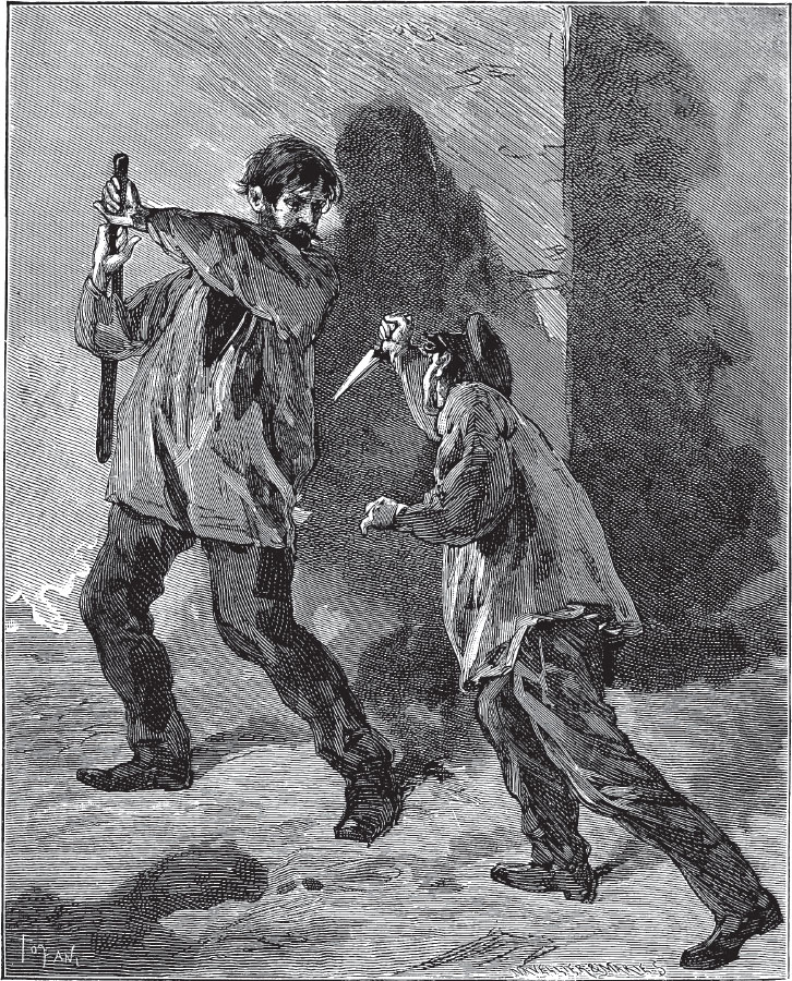 – Он скоро придет; затейте с ним ссору… только действуйте смелее, открыто… до сих пор вы ни разу еще не отважились на это… но ведь вас будет двое, да и я вам помогу… Только нож в ход не пускать… я не хочу крови… его надо избить, но не ранить.