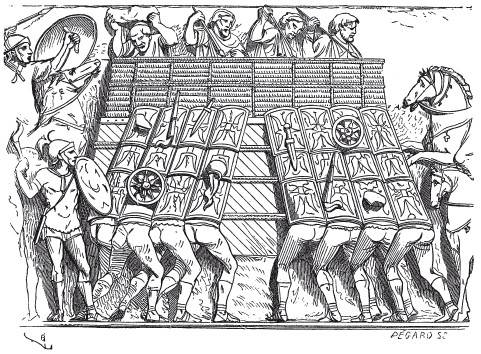 Римляне достигли большого мастерства в деле осады и штурма хорошо укрепленных крепостей, при этом они проявляли такую изобретательность в выборе средств, которую трудно себе представить. Структура их армий была приспособлена не только для полевых сражений, но и для длительных осад – римские солдаты легко превращались в разведчиков, саперов, плотников, каменщиков и рабочих других профессий, и над сооружением валов, подкопов и ходов сообщения обычно трудилась вся римская армия, успевая при этом постоянно тревожить врага и отбивать его вылазки. В этом и надо искать объяснение тому факту, что сравнительно небольшая по численности римская армия брала город, затратив на его осаду ровно столько времени, сколько требовалось для выполнения поистине гигантских по объему работ. Когда Цезарь в 49 году до н. э. оставил часть своей армии осаждать Массалию (позже, при римлянах Массилия, ныне Марсель), римляне проделали огромную работу, которая позволила постепенно нейтрализовать оборону этого хорошо укрепленного города (греческой колонии с VI в. до н. э.), позже капитулировавшего. Особую роль в этом сыграло одно из осадных сооружений римлян, и мы хотим привести здесь отрывок из «Воспоминаний» Гая Юлия Цезаря, в котором он дает его описание, стараясь сохранить при переводе стиль оригинала:
