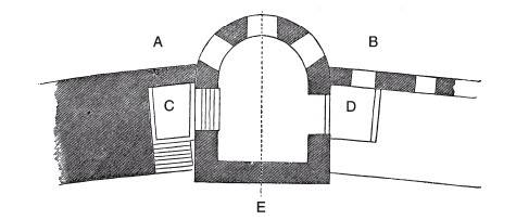 Вестготские укрепления города Каркасон, сохранившиеся до наших дней, имеют то же строение, что и укрепления, описанные Вегецием. Уровень грунта в городе гораздо выше окружающей местности и достигает почти самых парапетов. Куртины, имеющие большую толщину, выложены слоями небольших камней кубической формы, которые чередуются со слоями кирпича, а промежуток между внешней и внутренней стенами заполнен не землей, а булыжником, залитым известковым раствором. Над куртинами возвышались башни, каждая из которых в случае прорыва осаждающих через стену превращалась в отдельный, независимый форт. С внешней стороны башни имели полукруглую форму, с внутренней – квадратную, а стояли башни на квадратном фундаменте. На рис. 6 приведен план одной такой башни с прилегающей к ней куртиной. На рис. А изображен план первого этажа, а на рис. В – второго.