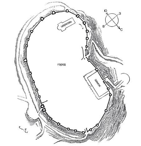 Рис. 10. Вид крепости, стоящей на холме, с высоты птичьего полета