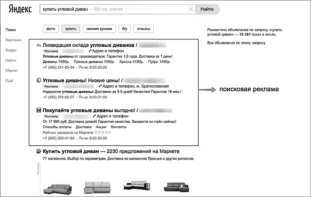 Контекстная реклама (в значении, о котором пойдёт речь в книге) – это реклама в интернете, показанная пользователю на основе его поведения и поисковых запросов, а также появляющаяся на площадках со смежной тематикой. Есть два основных вида такой рекламы: поисковая и контекстно-медийная.