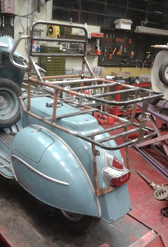 Кто уже ездил, порадовали меня тем, что заправочных станций много и они работают, поскольку на востоке товары перевозятся в основном по дорогам. Однако неожиданное всегда подстерегает, и я не пожелал бы никому обсохнуть и толкать Vespa с багажом, обязательно под палящим солнцем или под дождем. Я хочу иметь небольшой запасной бак и размещаю его в единственном оставшемся незадействованном пространстве – внутри запаски. Его емкость чуть меньше двух литров, но в случае крайней необходимости он будет спасением. Вооружившись рулеткой, я начинаю делать замеры, принимая во внимание установку двух багажников и вещевого мешка для моих личных вещей. Сначала я думал сделать конструкцию из алюминиевых труб, чтобы облегчить вес, но почти сразу отказался от этой идеи, не столько из-за высокой стоимости, сколько из-за того, что если бы мне понадобилась сварка посреди степи, я вряд ли нашел бы кого-то, кто смог бы мне ее сделать. Так что я выбираю старый добрый олдскульный металлолом, жертвуя некоторыми старыми багажниками. Дедушка Джино учил меня оптимизму. Я не хочу показаться навязчивым барахольщиком, но я считаю, что у творческого человека всегда должно быть все необходимое для реализации проектов. И потом, Vespa-гараж это как свинья-копилка, вы ничего не выбрасываете!