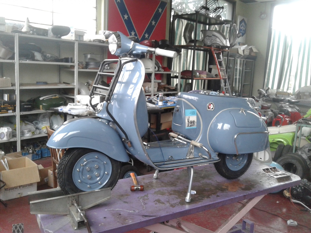 В середине октября 2019 года со мной связывается Франко Патриньяни и приглашает меня на приятное мероприятие, организованное Moto Club Asso (CO). Во время мотопробега Чивенна в зале заседаний совета проводится выставка. В этот раз выставка посвящена Vespa, и Франко приглашен выставить скутер своего отца. Я сразу же с энтузиазмом принял приглашение и за две недели успел отполировать свою Vespa, чтобы представить её публике. Проект еще не был закончен, поэтому я установил в раму обычный двигатель, так как форсированный еще был в стадии сборки.
