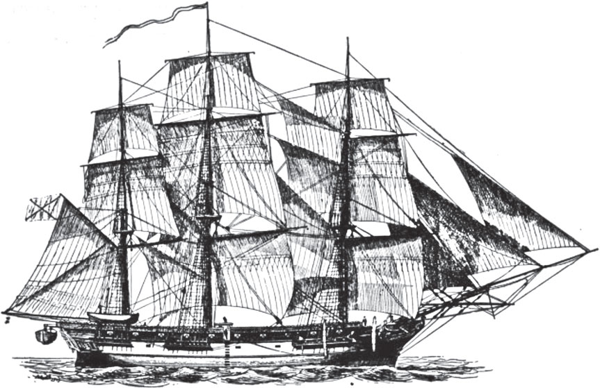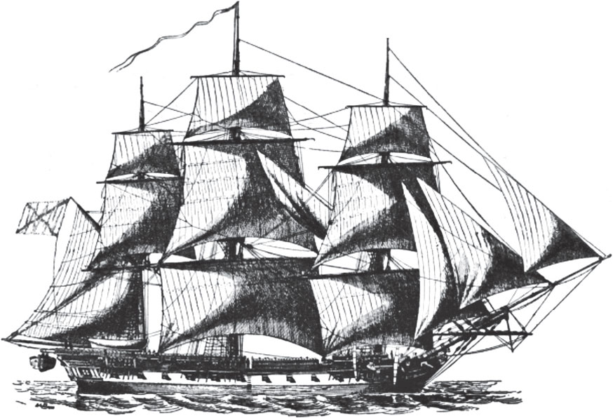 Шлюп «Мирный». Рис. художника М. Семенова, выполненный на основание исторических и архивных материалов