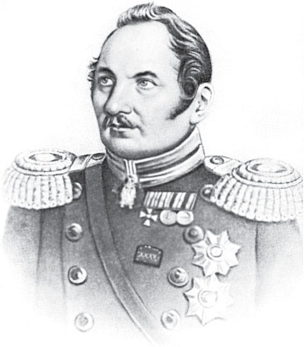 Адмирал Фаддей Фаддеевич Беллинсгазузен (по литографии У. Штейбаха, относящийся примерно к 1835 г.)