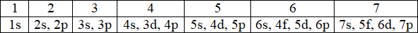 Электроны располагаются на орбиталях и уровнях в порядке возрастания их энергий: уровни заполняются от первого к седьмому, а подуровни – в последовательности s-p-d-f. Последовательность возрастания энергии называется шкалой энергии.