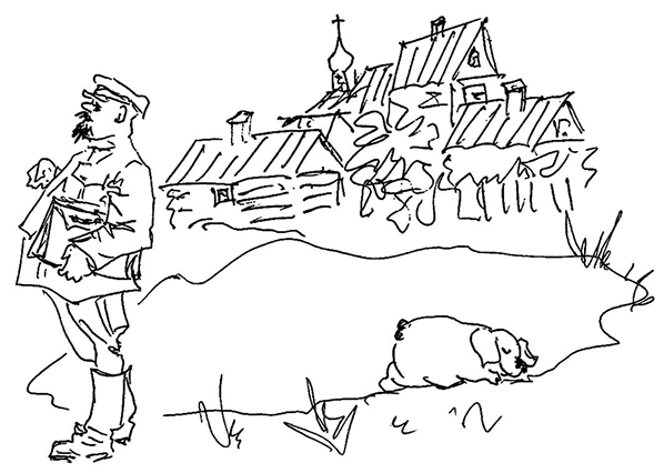 Когда оркестр в очередной раз отыграл «Наш паровоз вперед лети» и замолк, глава местной администрации выступил вперед для приветственной речи. В это мгновение произошло что-то непонятное – вместо голоса тучного чиновника с портфелем под мышкой мы услышали хрюканье, истошный вопль «ой-ой-ой!» и… грохот падающей в лужу картины. Из-под рухнувшего эпического полотна с изображением Гадюкино поспешно выбрались две тощие грязные свиньи и метнулись прямо под ноги главе администрации. Тот взвизгнул неожиданно тонким голосом «Держи их!» и бросился выполнять собственное распоряжение. Толпа гадюкинцев, забыв о нас, последовала его примеру.