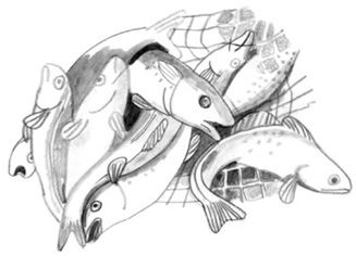 Наша первая ловушка была установлена в девяти фатомах за островом Буа, и мы добрались до нее с первыми лучами рассвета. Наш шкипер, пока мы все перегнулись через борт, вглядываясь в черную воду, проверил ловушку джиггером – шестидюймовой свинцовой рыбкой с двумя огромными крючками, подвешенной на конце толстой лески. Он опустил джиггер в ловушку и резко его выдернул. С первого же раза он подцепил отличную жирную треску и втащил ее, переливающуюся жемчужным блеском, на борт.