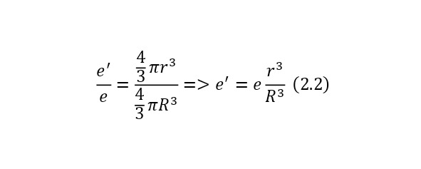 А для определения заряда мнимой сферы, образуемой внутри общего большого заряда, можно использовать отношение этой мнимой сферы ко всей сфере, а поскольку заряд общей сферы уже известен и равен с зарядом электрона, чтобы атом был нейтрален, то и получается выражение (2.2), где и выводится заряд мнимой сферы.