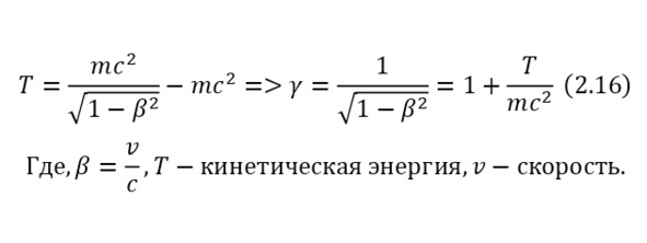 Одним из важнейших элементов в теории относительности является Лоренц-фактор (2.15), который участвует почти во всех формулах теории относительности, который также можно вывести из формулы кинетической энергии (2.16).