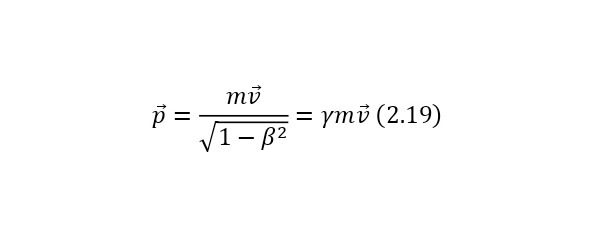Наличие этого равенства приводит к тому, что решается проблема отсутствия формулы для вычисления энергии частиц, не имеющих масс (пример, фотон или глюон). А уже из (2.16) также можно вывести более упрощённую запись для кинетической энергии (2.18). В случае же применения (2.15) для формулы импульса (2.19), получается также упрощённый вид.