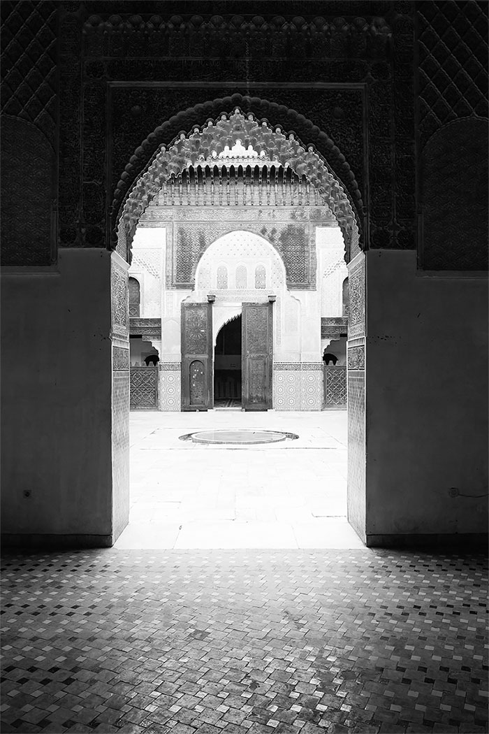 А если ты поднимал глаза вверх, можно было увидеть изящное трехэтажное сооружение, верхние этажи которого повторяли квадратную сводчатую колоннаду двора и завершались посеребренным кованым парапетом. И наконец, там было небо – оно висело высоко вверху, но все равно имело строго квадратную форму, как и все остальное, и было твердо вписано в рамку деревянного бордюра из поблекших золотисто-охряных геометрических узоров.
