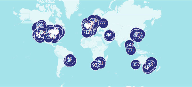 Рисунок 1.2.2 – Топ-100 мировых научно-исследовательских институтов по количеству статей в рубрике «Общественное здравоохранение, окружающая среда и гигиена труда» (данные SciVal за 2017–2020 гг. по состоянию на 05.05.2021)