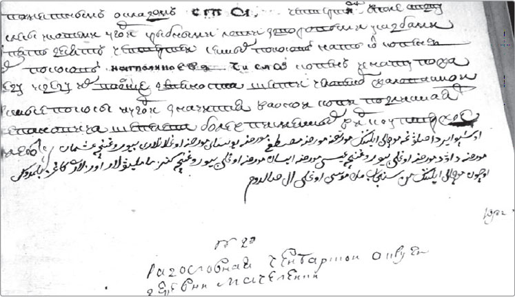 «В прошлом 7207-м (1698) году, июня в 7-й день, по указу Великого государя, царя и Великого князя Петра Алексеевича всея Великая и Малая и Белая Россия самодержавца… изволиной дал сию выпись разных городов мурзам и татарам Сулейману Акжигитову с товарищи… и челобитью Верхнеломовского уезду деревни Коргалеи да деревни Новосёлок (Кобылкино) служилых беломесных мурз и татар сержанта Араслана Полкаева сына Акжигитова с товарищи, верхнеломовец Афонасеи Скуратов да под(ь) я чеи Григореи Смирнов ездили за Ломовские воловые крепости в степь на дикое порозжее поля и в челобитчинные вотчинные ухожь в урочищи по Ченбарской дороге на Юрьевский верх, по обе стороны, по Колоновской дороге сквозь Сернилскаго липяга да устья Кевды реки вниз по обе ж стороны до устья реки Ятмиса по обе стороны до середнего липяга на верхний конец, идучи же по правой стороне на Малой Ченбарец и вниз того Малаго Ченбарцу, и перешед Большую Ченбарскуюдорогу с урочищи. А не доехав до тех вотчинных ухожьев и вышеописанных урочищ, имали с собой сторонних людей и сторожилых, и с теми сторонними людьми дикое поля вотчинные ухож(ь)и досматривались и сыскивалися. А по осмотр у и по сыску дикое поля измеряя в десятины и положили в четверти, а сенные покосы в копны, отвели челобитчиком сержанту Араслану Палкаеву… И в нынешнем 1700-м году июля 1-й день по нашему, государя указу, по челобитью разных городов мурз и татар сержанта Араслана Акжигитова с товарищи, велено с вышеписанных отказных книг впредь для владения вышеписанной их новоотказной. Таким образом, татарские села на территории нашего региона появились на рубеже 17–18 веков помесной земли дать им нашу великого государя грамоту с прочетом…».