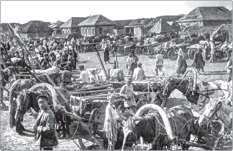 Вид татарского базара в с. Ст. Карлыган. (по вторникам) 20-е годы 20 века