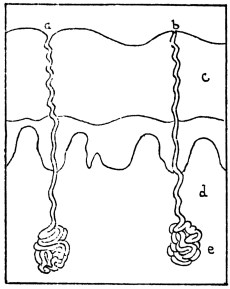 Section of Skin, showing Sweat-Glands, Ducts and Pores