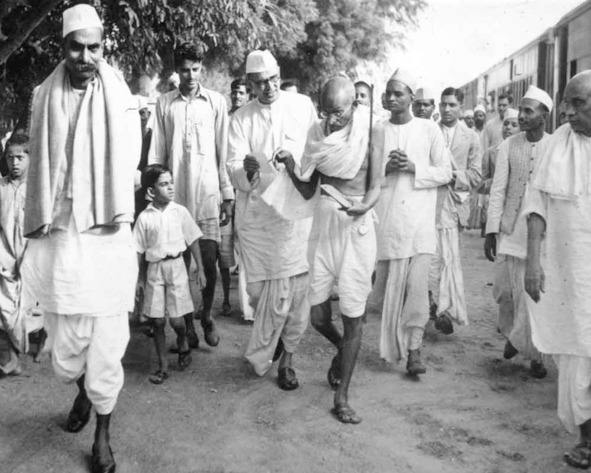 Махатма Ганди пропагандировал движение к независимости страны и хотел, чтобы у народа развивалось чувство собственной национальной гордости, и чтобы чиновники отказывались самостоятельно от почестей, титулов, выдаваемых Великобританией, от покупки английских товаров в пользу приобретения своих, национальных. Пропагандируя философию ненасильственной борьбы, он постоянно призывал сограждан к мирной акции: массовой забастовке и неповиновению. Первая такая забастовка, акция 1919 года, начавшись мирно, постепенно вышла из-под контроля и началось столкновение митингующих с полицией. Соответственно, Ганди, как зачинщика, арестовали и приговорили к тюремному заключению. Находясь в заключении, он критически стал переосмысливать суть своей теории, пути её реализации. После освобождения он не вернулся домой, желая спокойствия семье, жене и детям, стал продолжать борьбу за независимость, живя в лачуге для бедных. Находясь здесь, делив свою еду с ними, он рассказывал им значимость независимости, необходимость положить конец жестокости британцев. Параллельно он обращался с этим призывом к политической элите. Проповедуя свою философию, он способствовал с одной стороны, нравственному обновлению общества, а с другой, добился того, что выдвигаемые им принципы стали менять стереотипы мышления людей, влиять на расстановку и переориентацию политических сил в стране.