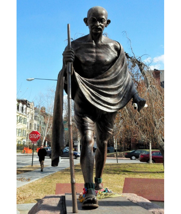 В разных странах мира можно встретить мемориалы и памятники, возведенные в честь «великой души». Везде его запечатлели уже в преклонном возрасте с посохом в руке и босиком. Именно таким его помнит мир.