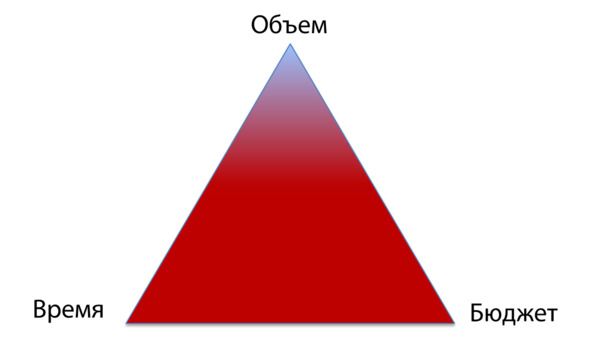Например, если просят сократить срок проекта в 2 раза, нам при этом нужно будет либо увеличить бюджет (чтобы сделать то же, но в 2 раза увеличив ресурсы), либо уменьшить объем работ (при неизменных ресурсах), либо может меняться и то, и другое.