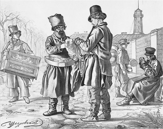 Рисунок Игнатия Щедровского из книги «Сцены из русского народного быта». 1852 год. Государственная публичная историческая библиотека России.