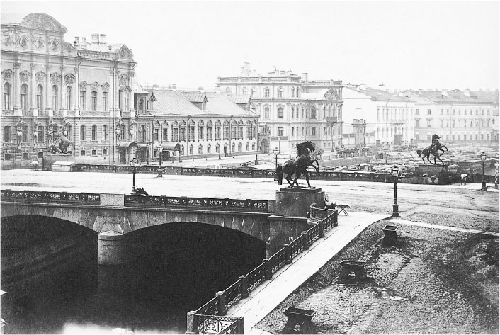 Аничков мост. 1860-е годы. Фото А. Лоренса. Российская национальная библиотека.