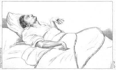 Душевнобольной пациент с эпилепсией во французской лечебнице. Гравюра из книги Жана Этьена Доминикa Эскироля «О душевных болезнях, рассматриваемых в медицинских, гигиенических и судебно-медицинских отношениях». 1838 год[5]
