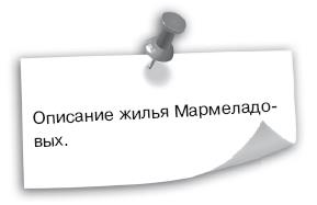 Маленькая закоптелая дверь в конце лестницы, на самом верху, была отворена. Огарок освещал беднейшую комнату шагов в десять длиной; всю ее было видно из сеней. Всё было разбросано и в беспорядке, в особенности разное детское тряпье. Через задний угол была протянута дырявая простыня. За нею, вероятно, помещалась кровать. В самой же комнате было всего только два стула и клеенчатый очень ободранный диван, перед которым стоял старый кухонный сосновый стол, некрашеный и ничем не покрытый. На краю стола стоял догоравший сальный огарок в железном подсвечнике. Выходило, что Мармеладов помещался в особой комнате, а не в углу, но комната его была проходная. Дверь в дальнейшие помещения или клетки, на которые разбивалась квартира Амалии Липпевехзель, была приотворена. Там было шумно и крикливо. Хохотали. Кажется, играли в карты и пили чай. Вылетали иногда слова самые нецеремонные.