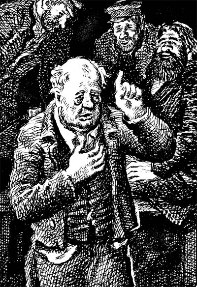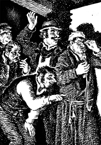 И он опустился на лавку, истощенный и обессиленный, ни на кого не смотря, как бы забыв окружающее и глубоко задумавшись. Слова его произвели некоторое впечатление; на минуту воцарилось молчание, но вскоре раздались прежний смех и ругательства: