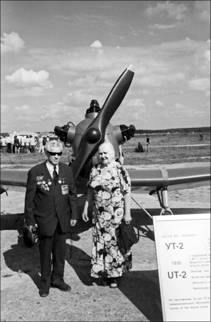 Ф.Ф. Архипенко с супругой возле учебно-тренировочного самолета УТ-2
