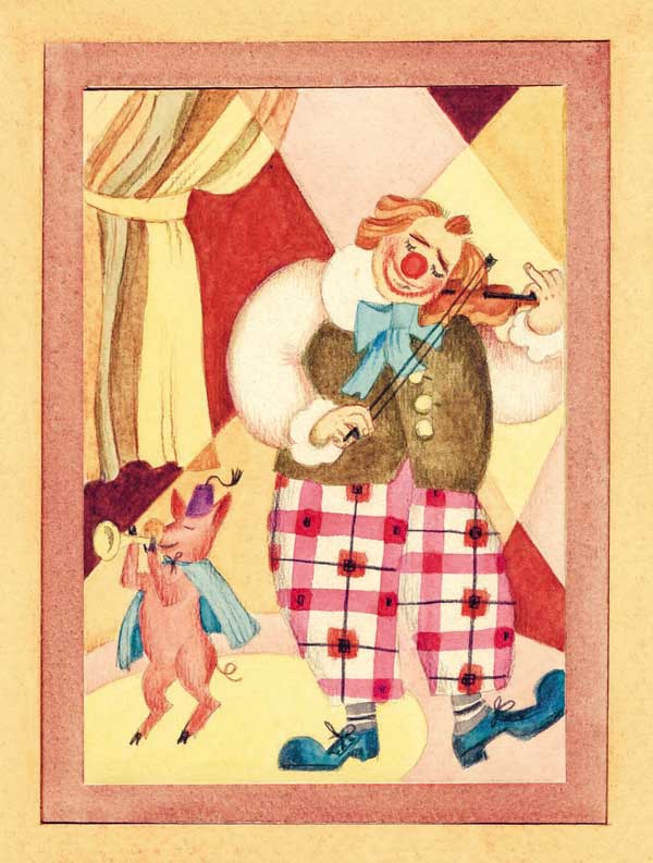 Потом клоун брал в руки скрипку и, вдохновенным жестом откинув со лба длинные волосы, которых у него почти не было, начинал наигрывать песенку «Мечта поросёнка», а поросёнок в своём долгополом шлафроке, встряхивая кисточкой фески, довольно музыкально (по крайней мере, для поросёнка) начинал напевать: