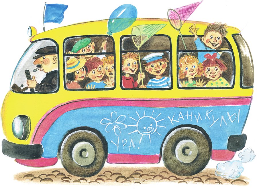 Однажды они увидели вереницу автобусов, в которых сидели маленькие ребятишки с сачками в руках и пели незнакомую песенку: