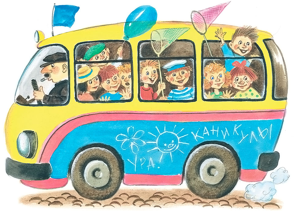 Однажды они увидали вереницу автобусов, в которых сидели маленькие ребятишки с сачками в руках и пели незнакомую песенку: