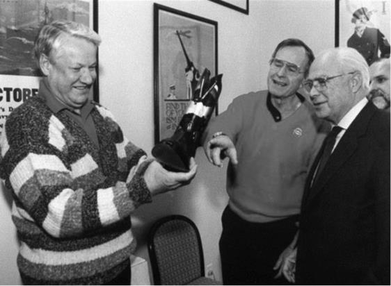 Посол США в России Роберт Страусс с Б. Ельциным и Дж. Бушем-старшим