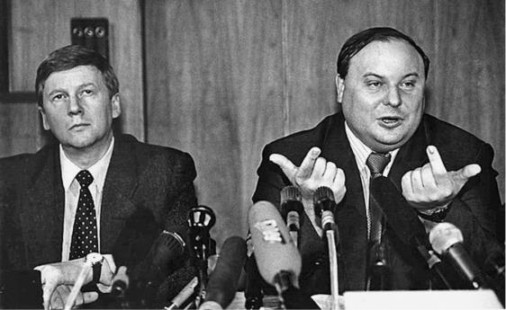 Анатолий Чубайс и Егор Гайдар – главные толкачи «шоковой» реформы в России. Гайдар буквально на пальцах объясняет, как они будут «ломать» страну и выводить ее в «светлое будущее». Эта «распальцовка» станет символом ельцинской России – одни получат все, другие – кукиш.
