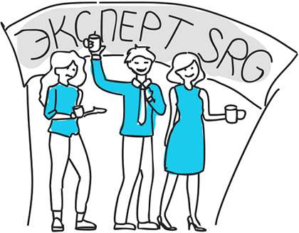 Каждый год на новогоднем корпоративном мероприятии мы проводим ритуал посвящения в эксперты. Сотрудники, достигшие экспертного уровня знаний, читают клятву эксперта SRG и выпивают особый коктейль из фирменных кружек – и после этого становятся полноправными носителями нового профессионального звания.