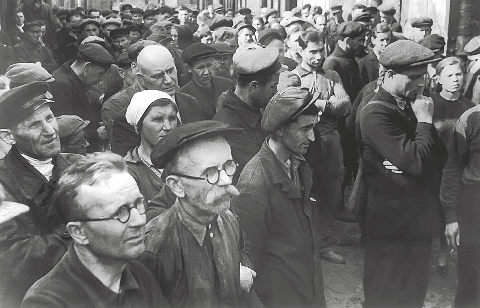 Люди слушают обращение Молотова. 22 июня 1941 года