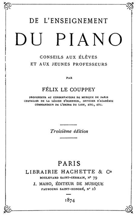 Félix Le Couppey (1811 1887) was a French composer, pianist, teacher. For many years Le Couppey taught at the Paris Conservatoire piano, harmony, accompaniment.