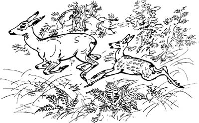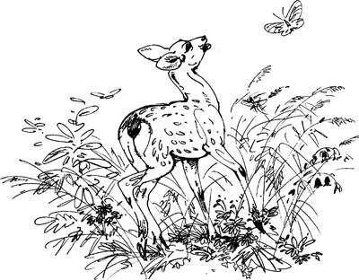 Бемби развеселился. Он храбро прыгал в сторону от дороги, но тут же возвращался к матери.