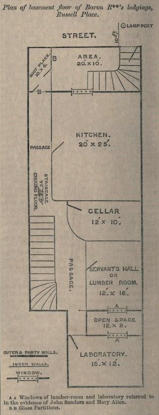 Plan of basement floor of Baron R**'s lodgings, Russell Place.